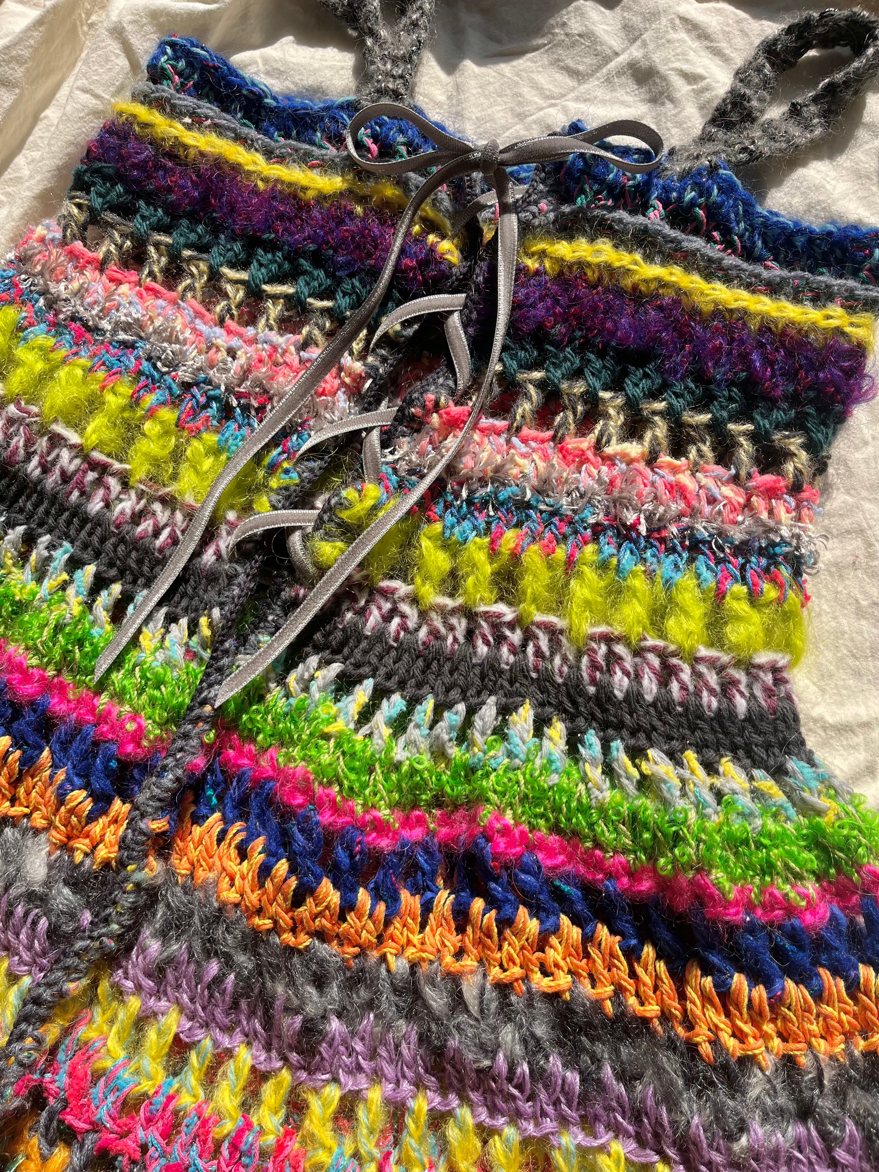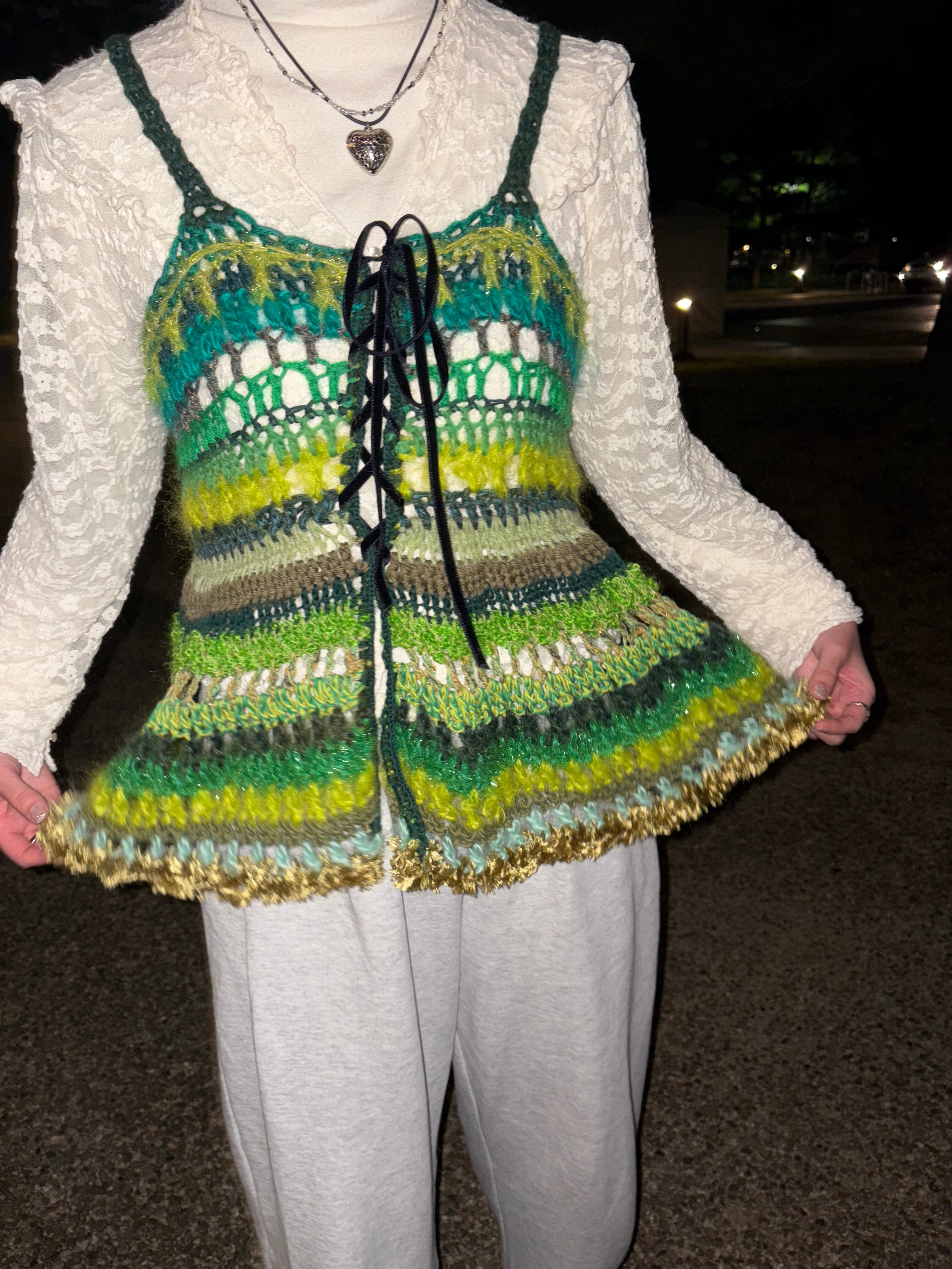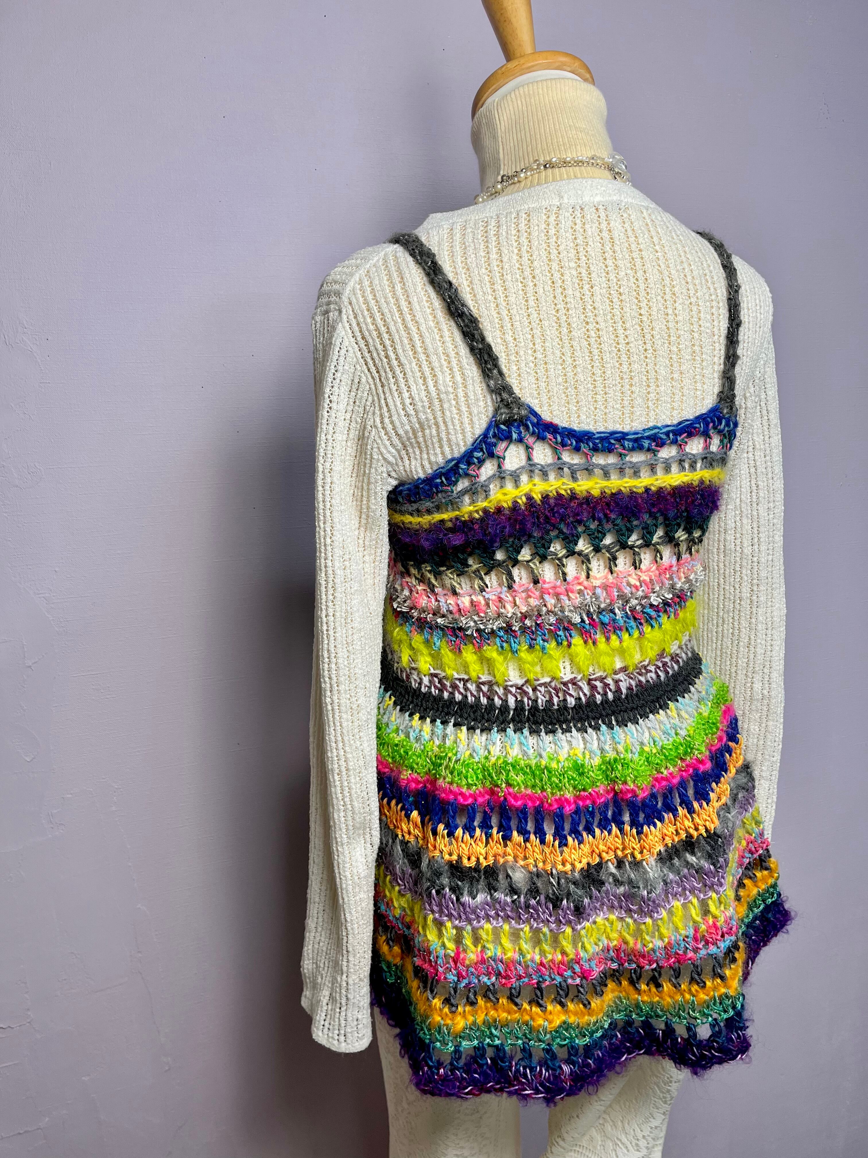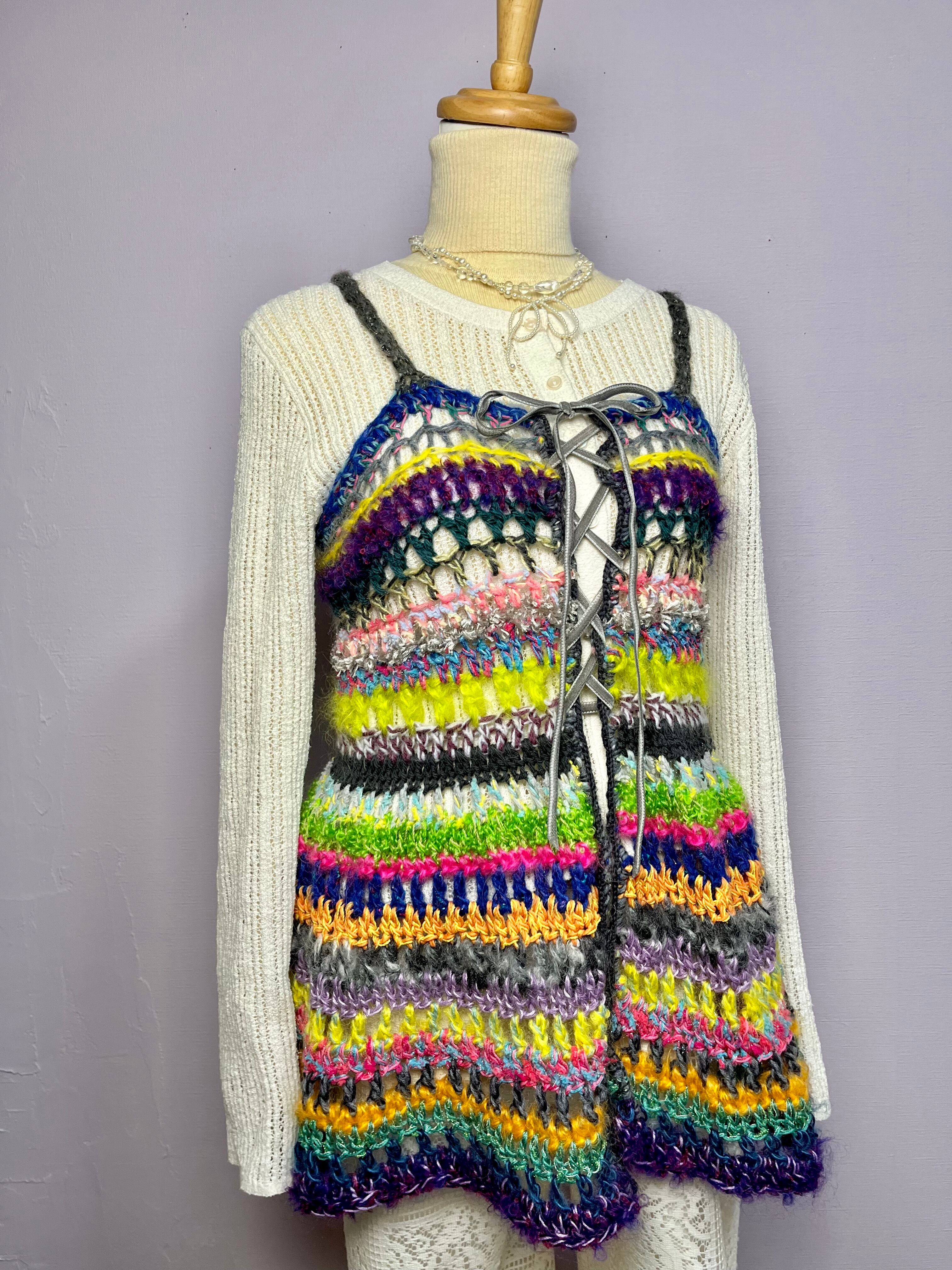 身幅:約39cm(胸囲は約84cmまで伸びるように編んであります。それ以上身幅を大きくしたい場合は胸元のリボンで調節をお願いします)