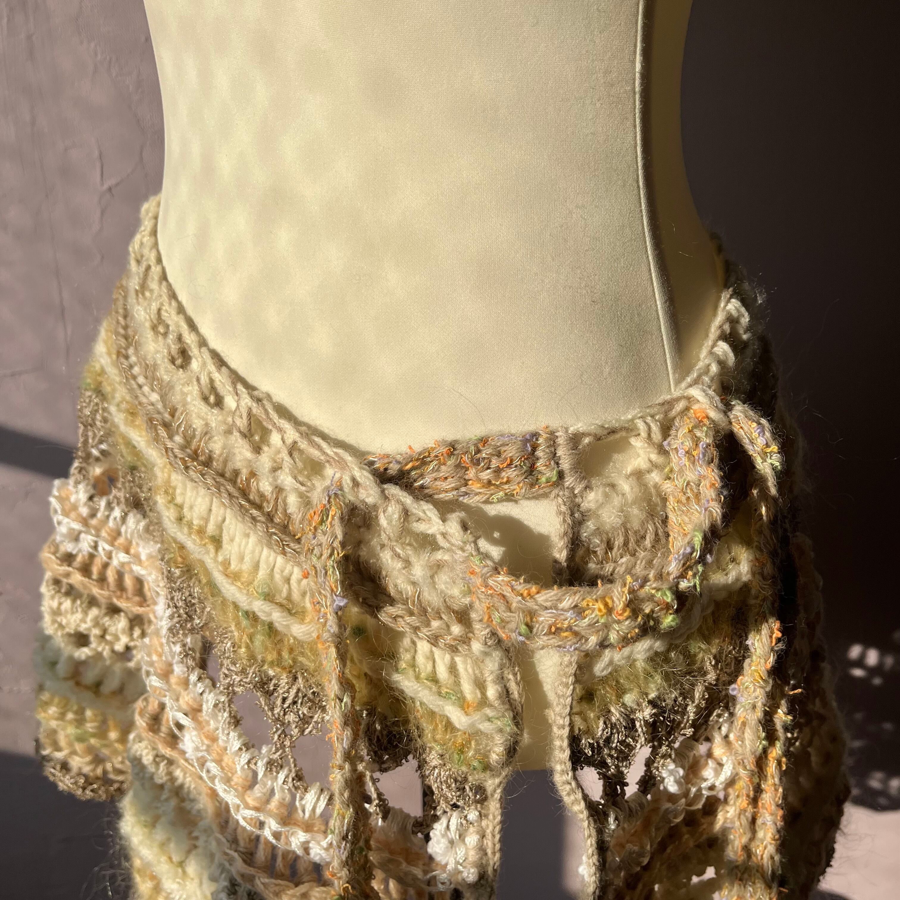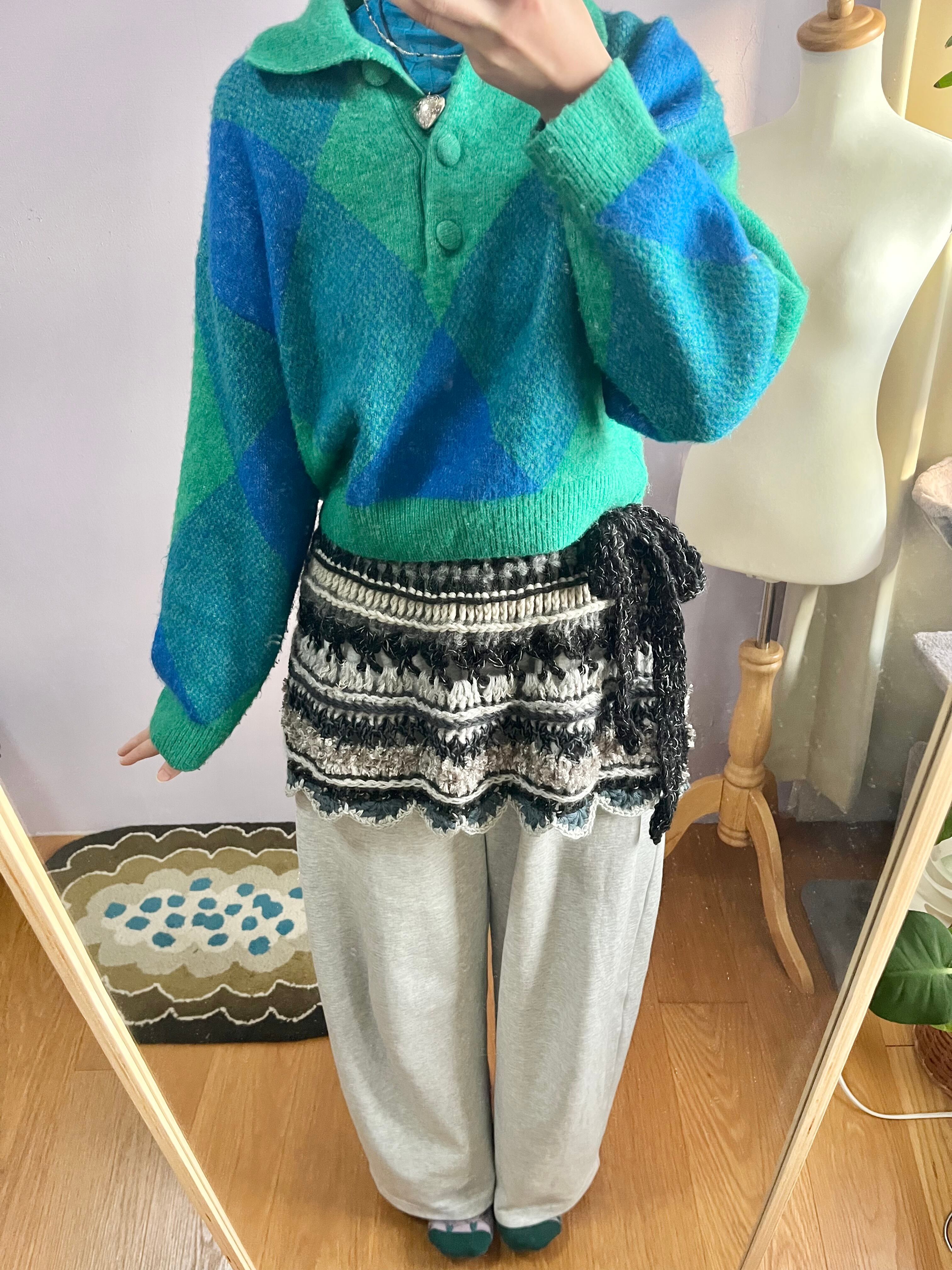 巻きスカートとして着用時、ウエストを小さくしたい場合はマス目部分に紐を通すとお好みのサイズに調節可能です◎