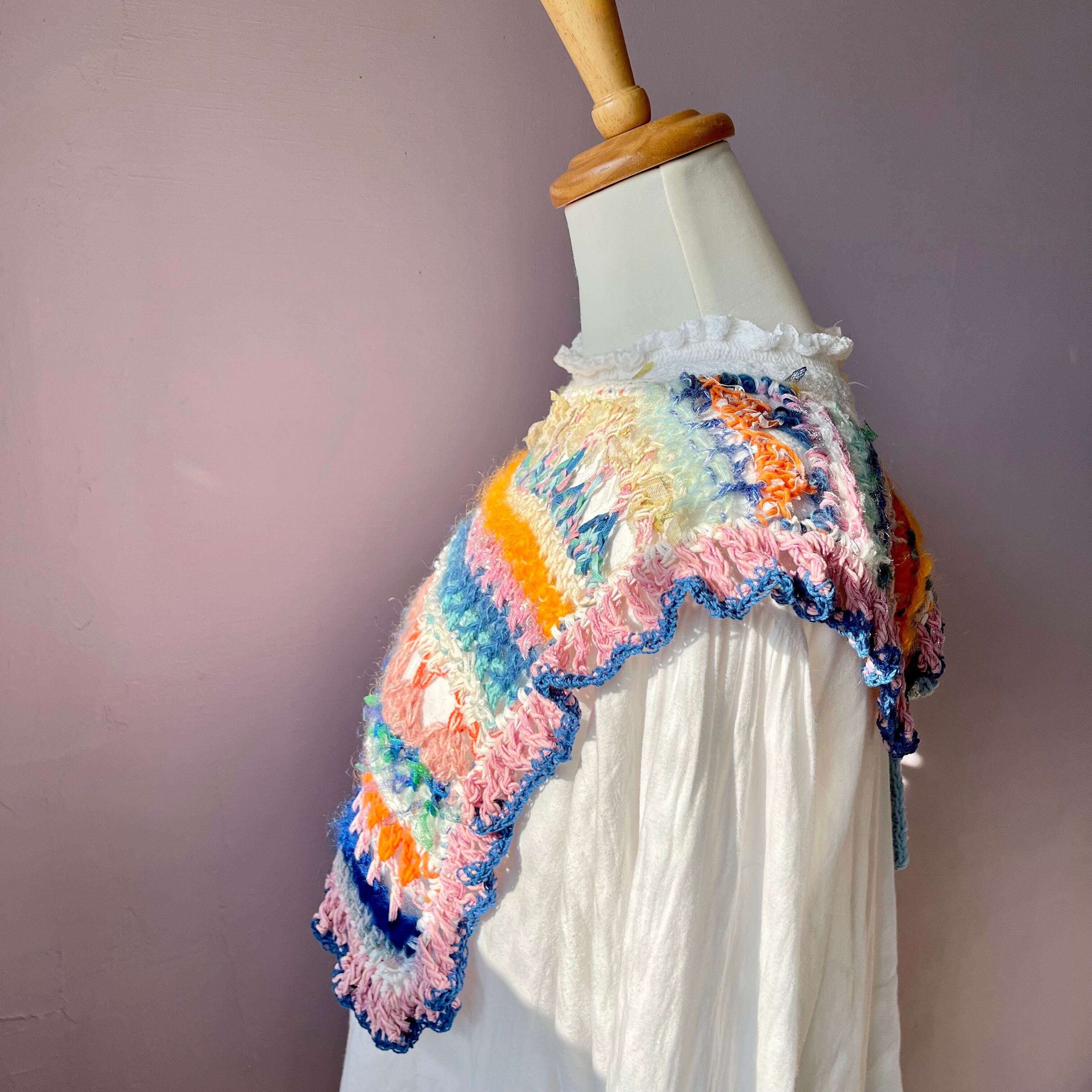 コットン、ウール、モヘアなどいろんな種類の毛糸を使用しており、編み方や配色もいのぷぺぽが気ままに編んでいるので一点物になります!
